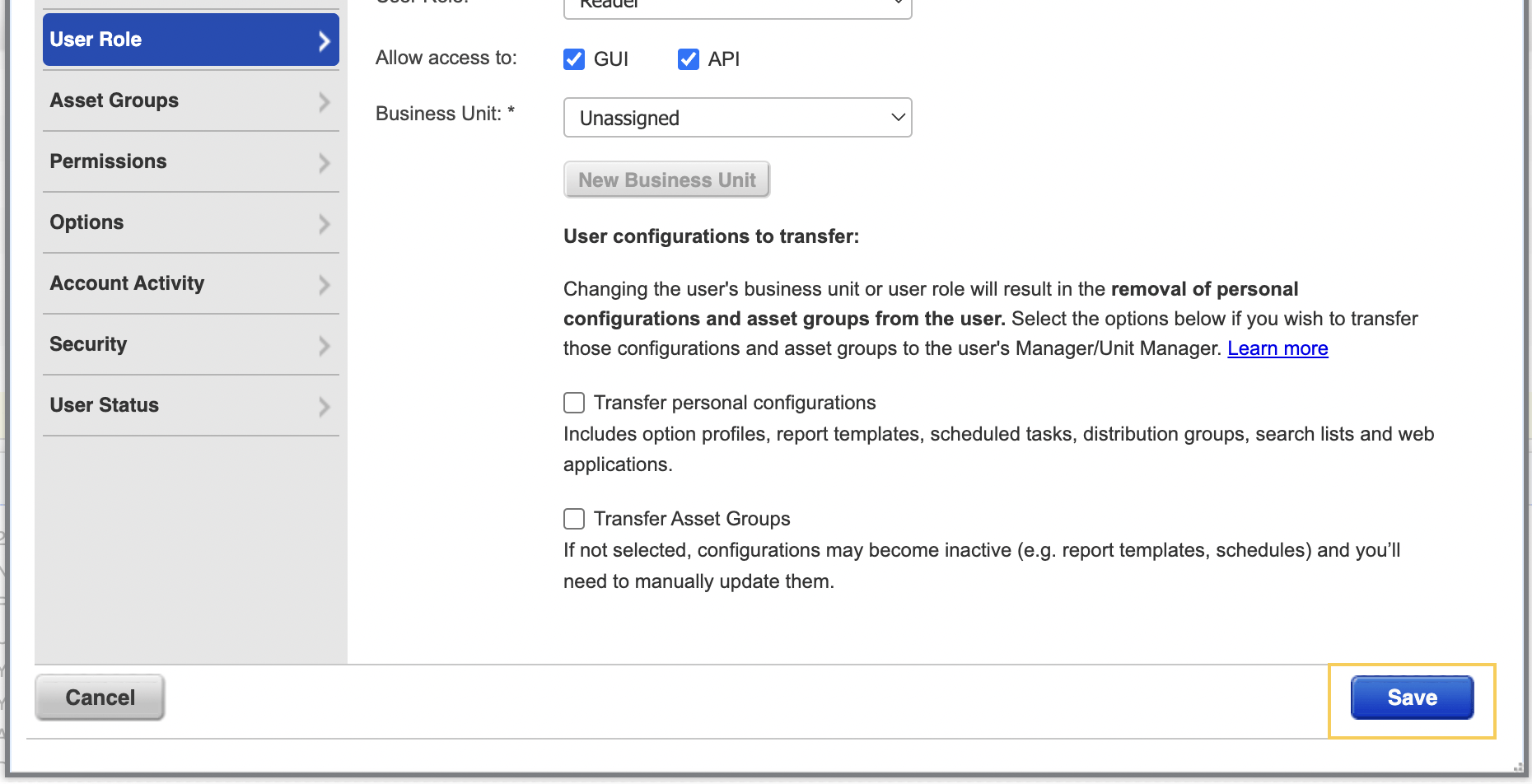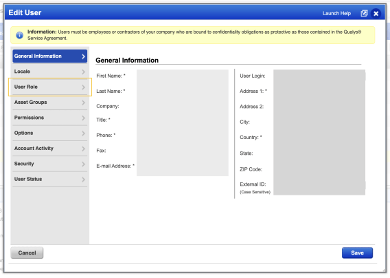 Aside from that, you need to check your Qualys user settings and make sure that the user you will use for the integration has: