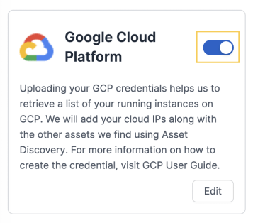 2 – Switching the toggle on the top right of the GCP card on or off.